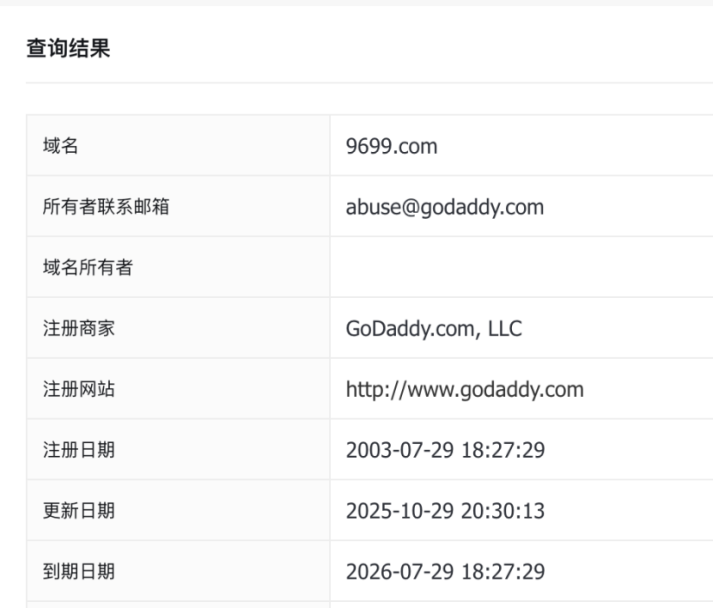 (域名9699.com在聚查网上查询的数据)