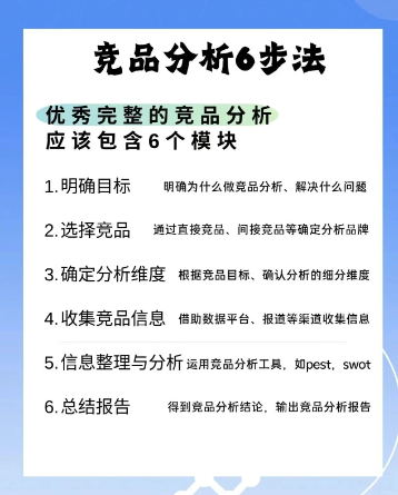 - 分析方法:比较法(横向对比竞品)、矩阵分析法(二维矩阵分析定位等)、竞品跟踪矩阵(从历史版本找规律)、功能拆解(拆分一至三级功能);还可通过探索需求(挖深层需求)、PEST分析(宏观环境找机会威胁)、波特五力模型(行业环境找机会威胁)、SWOT分析(找优劣势与机会威胁)开展。